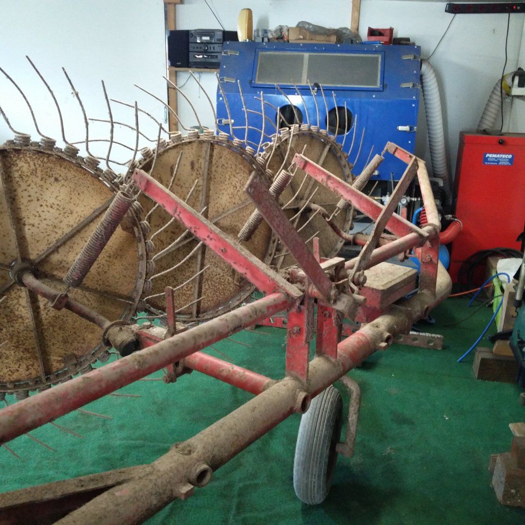 Hier ein ursprünglich pferdegezogener Schlepprechen Fabrikat Fahr.