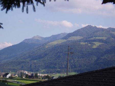 Am Südhang des Buchberg, mitten im Grünen versteckt, steht unser Haus. 6 Zimmer, eine geräumige Wohnküche bieten genug Platz für alle. Die Weisstanne links im Bild wurde von einem wunderbaren Ausflug mit unserer lieben Grossmutter in einem Veloanhänger nach Hause gebracht und eingepflanzt. Das Bäumchen war so 50cm hoch und bekam den Namen "Armin". Mittlerweile sind fast 40 Jahre vergangen und der Baum überragt das Haus bei weitem.